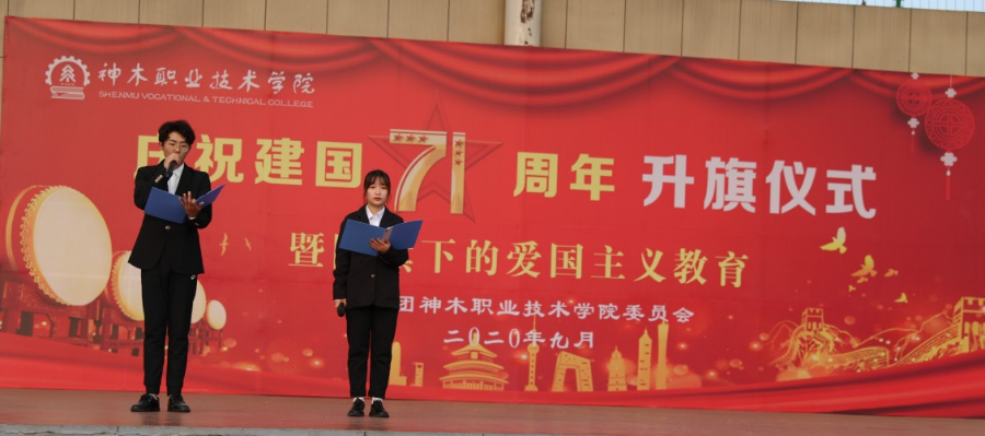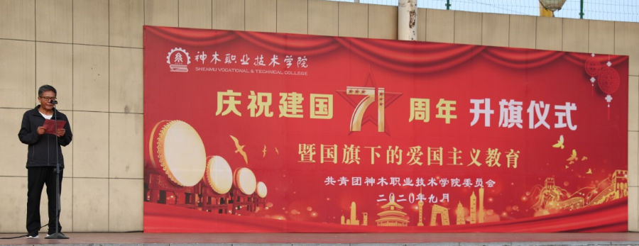 为庆祝祖国母亲71华诞,激励全校师生铭记先辈伟绩、传承革命精神、弘扬光荣传统,2020年9月25日早7:00,在学校操场上隆重举行了“庆祝中华人民共和国成立71周年升旗仪式暨国旗下的爱国主义教育”活动。全体师生参加本次活动,仪式由团委副书记司海燕老师主持。