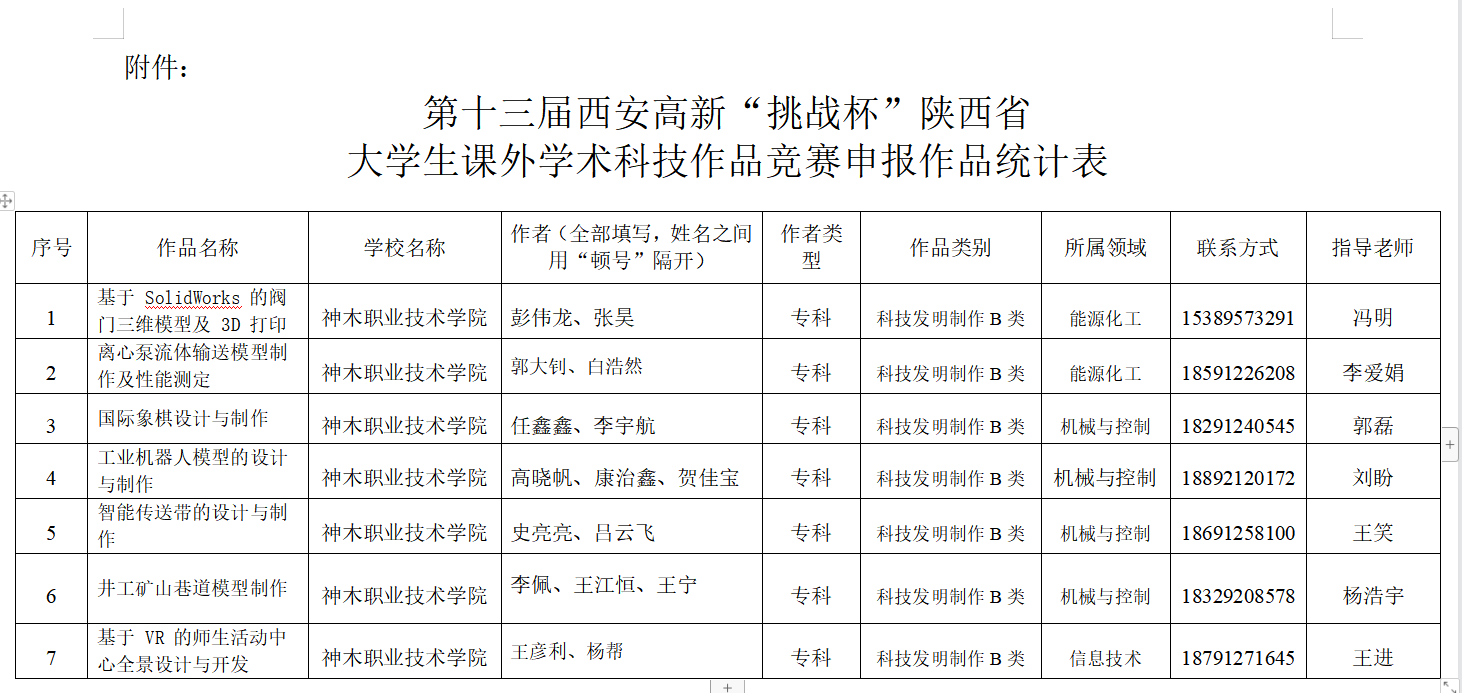 附件:365上市公司官网第十三届西安高新“挑战杯”陕西省大学生课外学术科技作品竞赛申报作品统计表