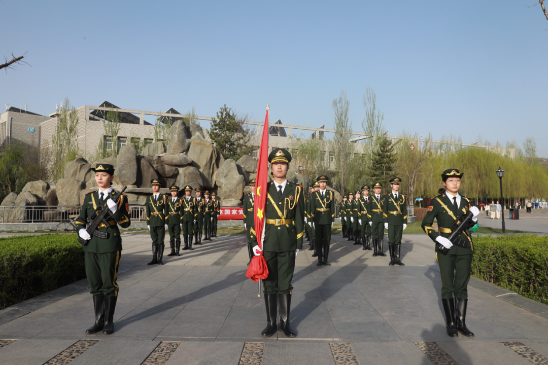 国旗护卫队于2024年4月15日上午7点在景观大道举行了隆重的升旗仪式。