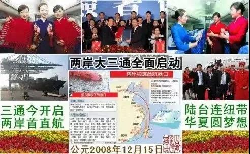 在历经59年的波折和期待之后,两岸的客机、轮船和信件,15日历史性地跨越台湾海峡,不再绕经第三地而直接通往彼岸,基本实现直接“三通”。