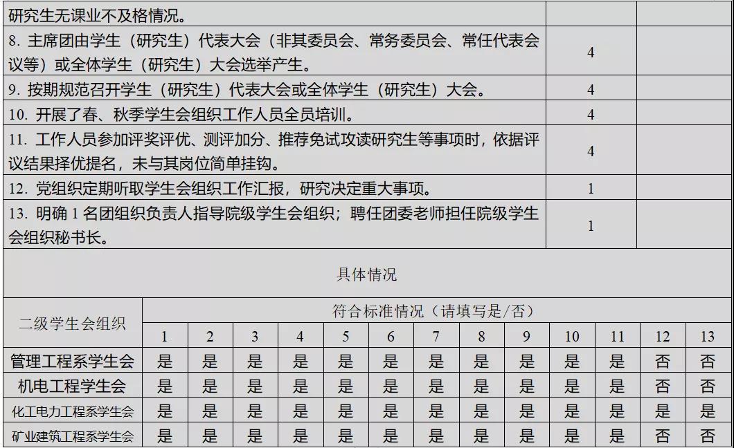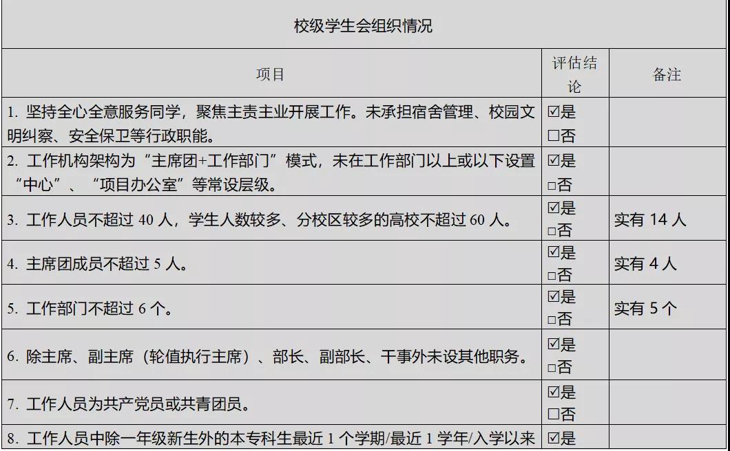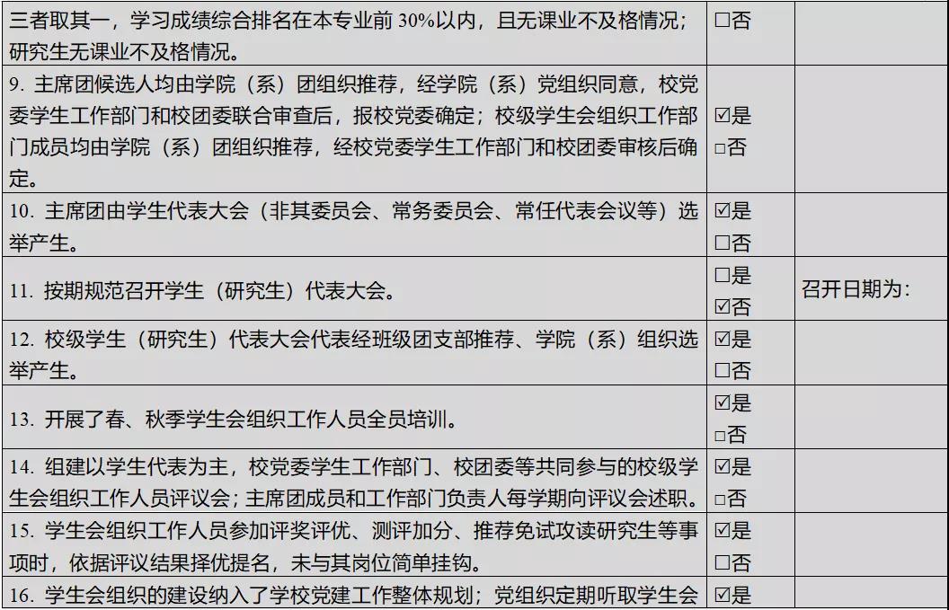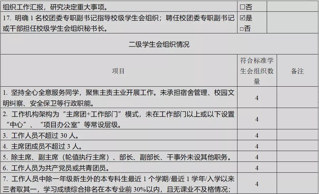 (二)二级学生会组织(含二级院系、书院、分校区等学生会、研究生会)改革自评表