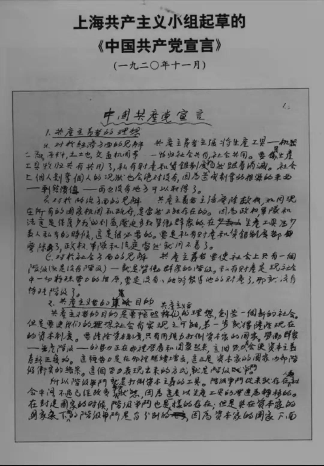 100年前,1920年11月23日,陈独秀在上海主持起草《中国共产党宣言》。