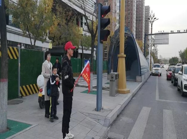 一周以来每日清晨志愿者们早早的来到崇文路十字路口,对不走人行横道、想要闯红灯的行人进行文明耐心劝阻——“宁肯多等一两分钟,千万别抢一两秒,安全出行靠大家,文明交通你我他”。在早晚高峰时期,志愿者们引导或护送行人过马路,为高效通畅的交通秩序作出保障,即便是天凉下雨,冷风瑟瑟,志愿者们仍坚守“岗位”毫无怨言,他们表示:“尽管多数情况下人们都能遵守交通规则,车会让人,人也能守规,但偶尔碰到想横穿马路、翻越交通隔离栏、摩托车或电动车驾车员不带头盔的现象时,经过自己的劝阻对方能够接受,甚至夸他们是认真负责的好娃娃时,心里真的暖暖的,美美的,这种奇妙生动的感觉是平时教室里上课时没有过的……”