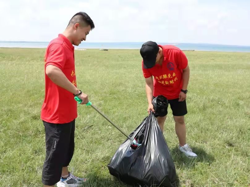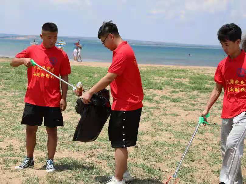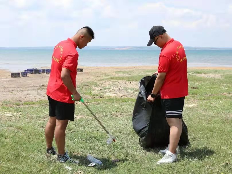 因到达景区正直饭点,红碱淖景区负责人张鹏飞得知实践队前往景区的目的后,热情的邀请全体队员在景区食堂品尝了当地的特色农家菜,并指派景区王建民主席带领实践队前往垃圾较多的区域捡拾垃圾。