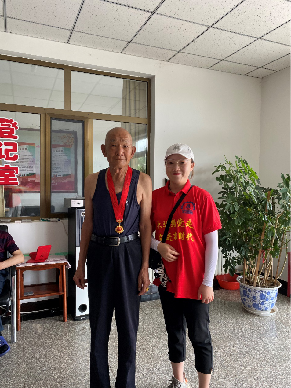 其中一位有30多年党龄的老党员,为同学们介绍了自己入党的经历和中国共产党党史相关知识,同学们纷纷表示受益匪浅。最后,同学们还将提前准备好的西瓜和老人一起分享,分享了一份甘甜清凉,也分享了同学们的关心与呵护。