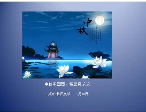 “每逢佳节倍思亲,情深谊长盼相聚”!中秋,一个洋溢着亲情的节日;中秋,一个诉说着团圆的节日;中秋,一个释放着思念的节日。为加深广大师生对中秋节的了解,矿业建筑工程系团总支特在9月20日晚自习组织学生开展“中秋团圆节,情深意浓浓”主题团日活动。