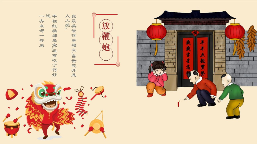 吃年夜饭,是春节家家户户最热闹愉快的时候。大年夜.丰盛的年菜摆满一桌,阖家团聚,围坐桌福旁,共吃团圆饭桌上有大菜、冷盆、热炒、点心,一般少不了两样东西,一是火锅,一是鱼。火锅沸煮,热气腾腾,温馨撩人,说明红红火火;"鱼"和"余"谐音,是象征"吉庆有余",也喻示"年年有余"。
