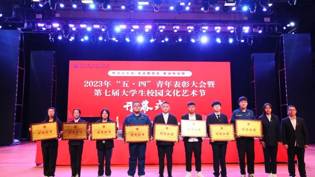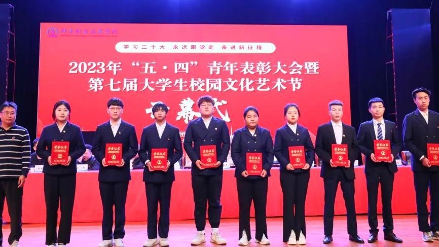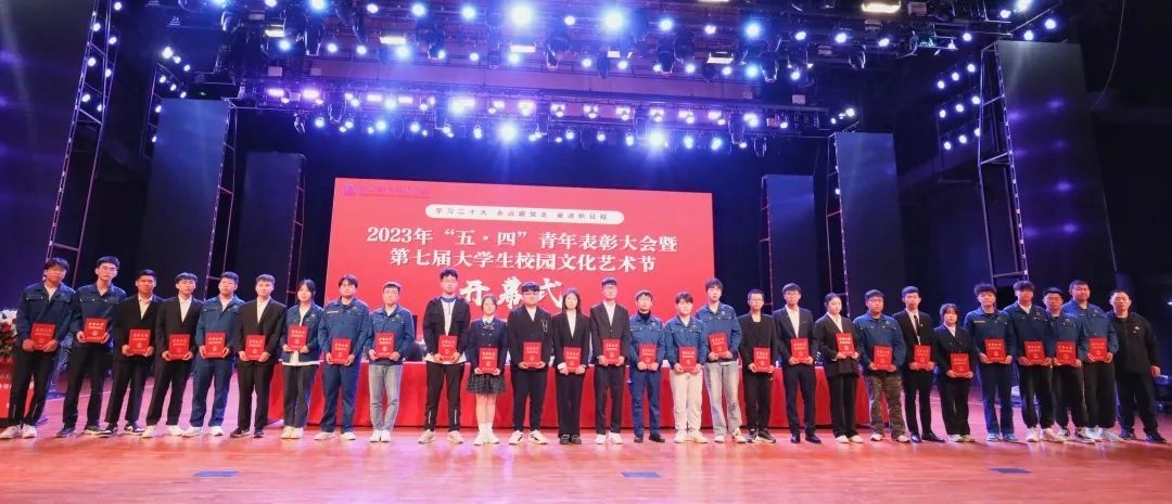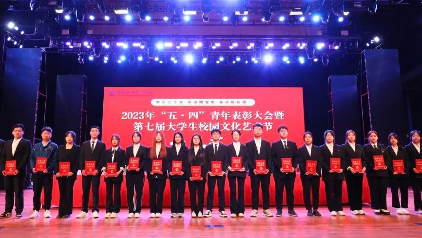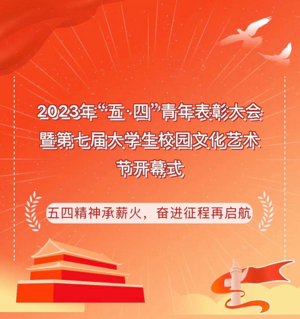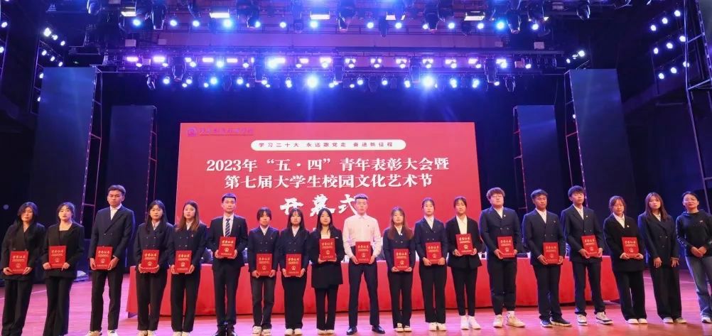 为庆祝建党102周年,纪念“五四”运动104周年,扎实推进“学习二十大、永远跟党走、奋进新征程”学习教育活动,引导广大团员青年继承和发扬“五四”精神,传承红色基因,我校于5月4日在师生活动中心隆重举行2023年“五·四”青年表彰大会暨第七届大学生校园文化艺术节开幕式。