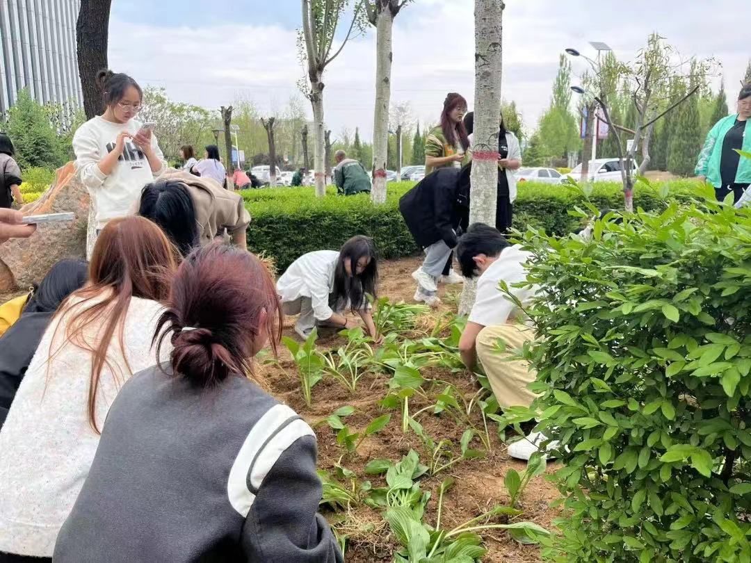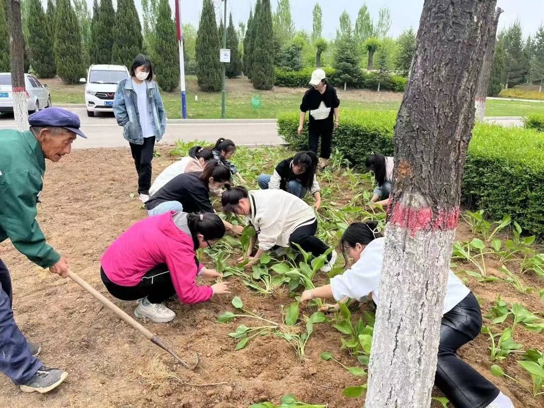 各班分成不同小组在各个小组长的带领下,物业相关劳动人员为同学们展示标准的种植技巧下,同学们都如火如荼的正式开展了种植工作。