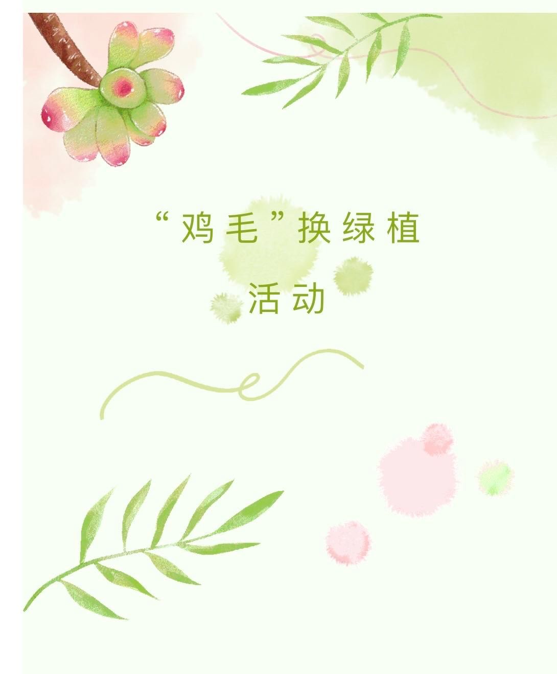 校社团管理部于6月7号14:30在五号教辅楼一楼会议室进行“鸡毛”换绿植活动,活动现场,同学们热情高涨,纷纷拿着旧书籍、水瓶等,大盆栽需要15个矿泉水瓶(易拉罐) 或者8本书 …… ,一边将小植物派发到同学们手中。不到半个小时,200多份绿植被兑换完。此次活动共兑换出各类盆栽四百多余份。