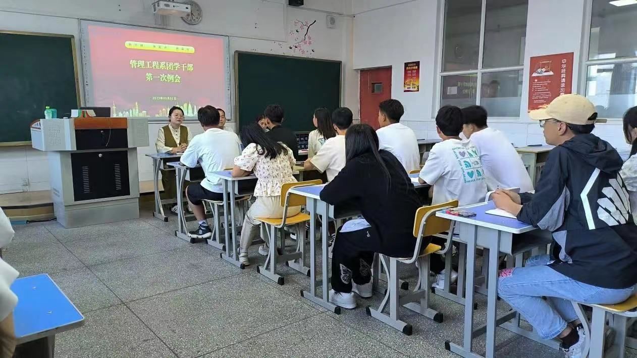 为认真贯彻共青团精神,全面提高学生干部综合素质,提高管理工程系团学干部工作质量,2023年9月1日下午,在3号教学楼3511室召开本学期第一次团学干部工作例会。会议由学工科干事张浩老师主持,张艳老师、燕艳丽老师及管理工程系所有团学干部参加。