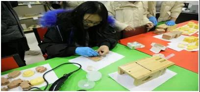 在指导老师讲解时社员们认真听,活动开始后她们积极参与,每次都能做到充分的准备,活动的开展可以不断提高社员们对技能的操作也体会到了不一样的乐趣。