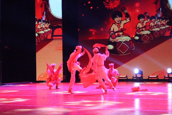 伴随欢快的旋律,迈着青春的舞步,演出在开场舞《腰鼓表演》中拉开帷幕。《腰鼓表演》将一片喜庆融洽的气氛带入了现场,随后,主持人宣布晚会正式开始。诗朗诵《青春中国》激起大家对祖国的热爱之情;相声《我忍不了》恢谐生动的表演引发现场一阵阵笑声;舞蹈《格桑花开》带领大家感受了来自藏族的对幸福吉祥的期盼;一曲吉他弹唱《听说》让大家意犹未尽;由书法协会和手工绘画协会共同带来的书画展,将书法与艺术的结合体现得淋漓尽致;《热舞青春》更是将整场晚会推向高潮,台上台下成了一片激情四溢的海洋。