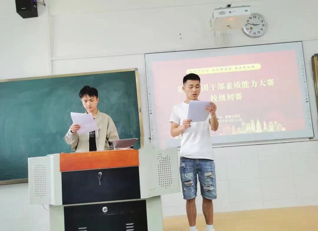 为深入学习贯彻落实“习近平新时代中国特色社会主义思想”,切实加强基层团组织建设,不断提高团干部的政治素养和专业素养,按照校团委要求,管理工程系团总支于2023年5月12日开展了“学习二十大,永远跟党走,奋进新征程”为主题的第四届团干部素质能力大赛初赛。我系三位专职辅导员担任此次初赛的评委,我系21、22级团干部参加比赛。