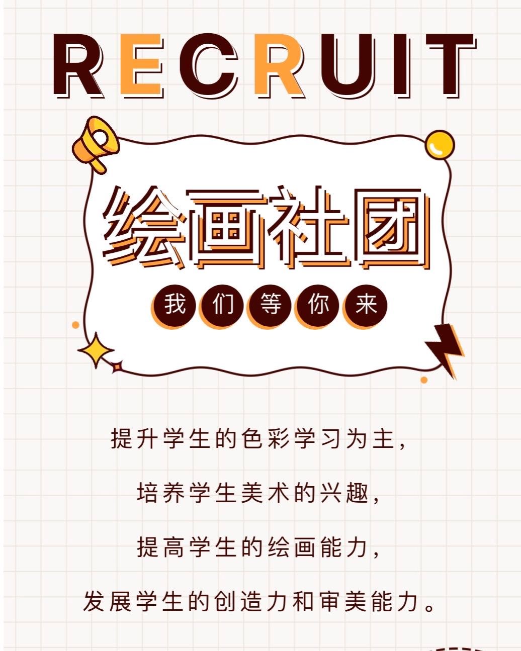 社团宗旨:以提升学生的色彩学习为主,培养学生美术的兴趣,提高学生的绘画能力,发展学生的创造力和审美能力