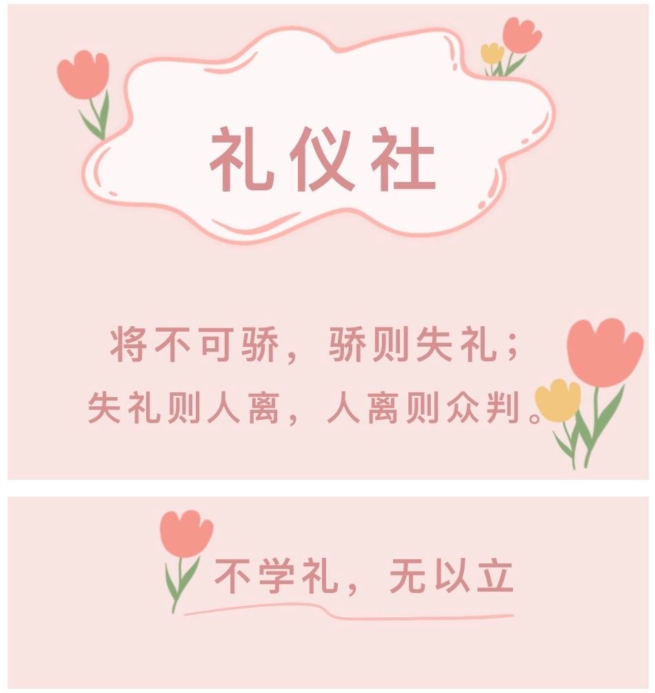 礼仪社团本着提高同学的自身形象、自身修养以及促进社会交际、创造良好的学习氛围而创办的。礼仪是什么?礼仪是蓝天下的一朵云,给人以纯洁;礼仪是风雨过后的一道彩虹,给人以慰藉;礼仪是夜晚的一盏灯,给人以光明。