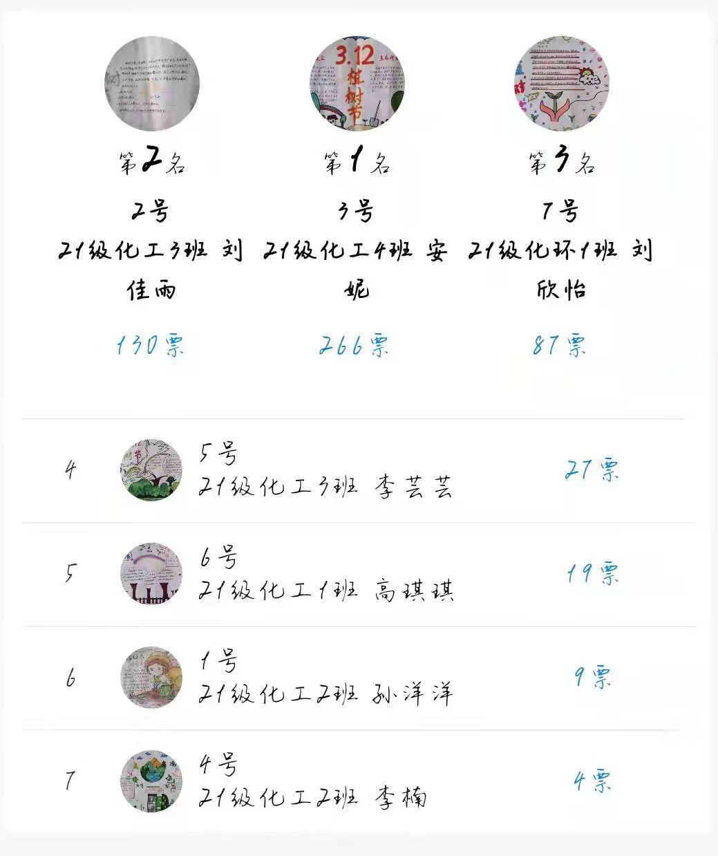 化工电力工程系团总支“植树节”手抄报比赛投票结果