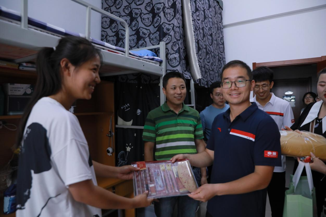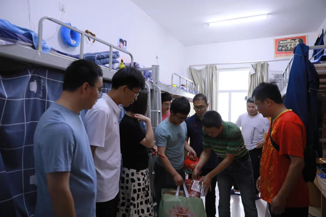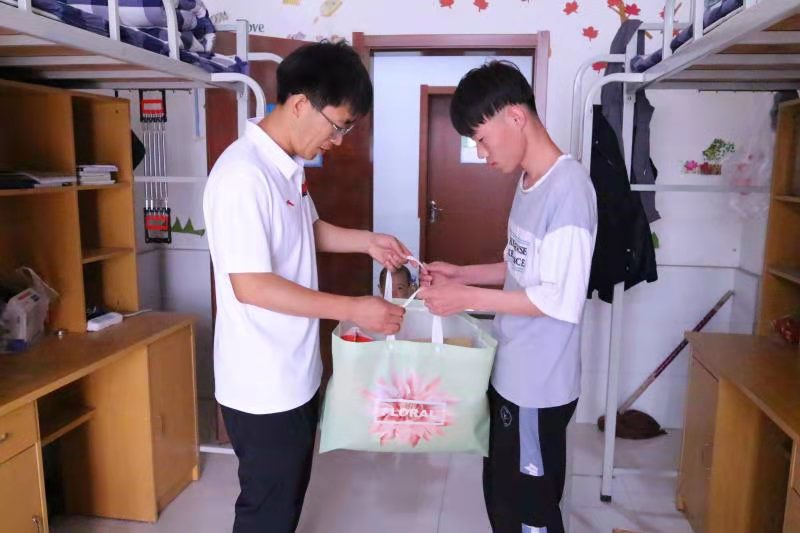 校团委全体及各系团总支书记走进宿舍向端午不能回家的学生致以节日的问候并送上夏凉被一床、宿舍被套床单三件套、文具套装、恒温陶瓷杯一套、洗护套装一套、粽子礼盒慰问品。老师们希望同学们能脚踏实地的学习,不断积累专业技能知识,为今后的工作夯实基础,在今后的奋斗中实现自己的人生价值和梦想。