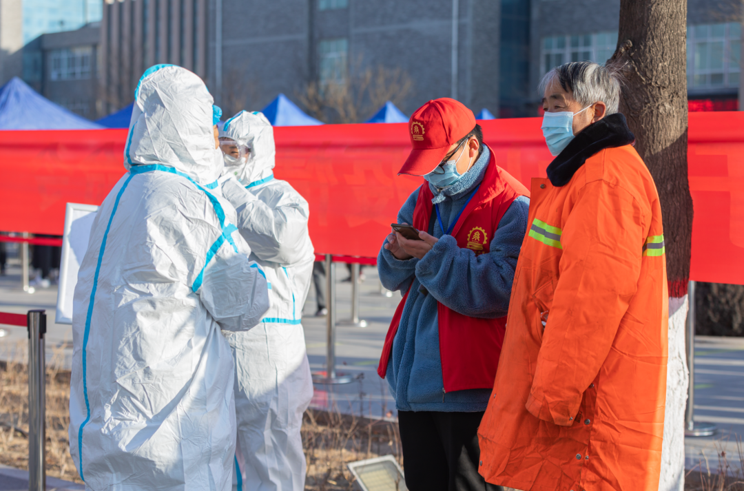 志愿者们都积极参与志愿服务活动,维护全员核酸检测秩序,引导老师同学们排好队伍,带好口罩,保持着安全的距离,为校园增添了一抹靓丽的“志愿红”。各位同学的无私奉献和以身作则,让这个冬天格外温暖。