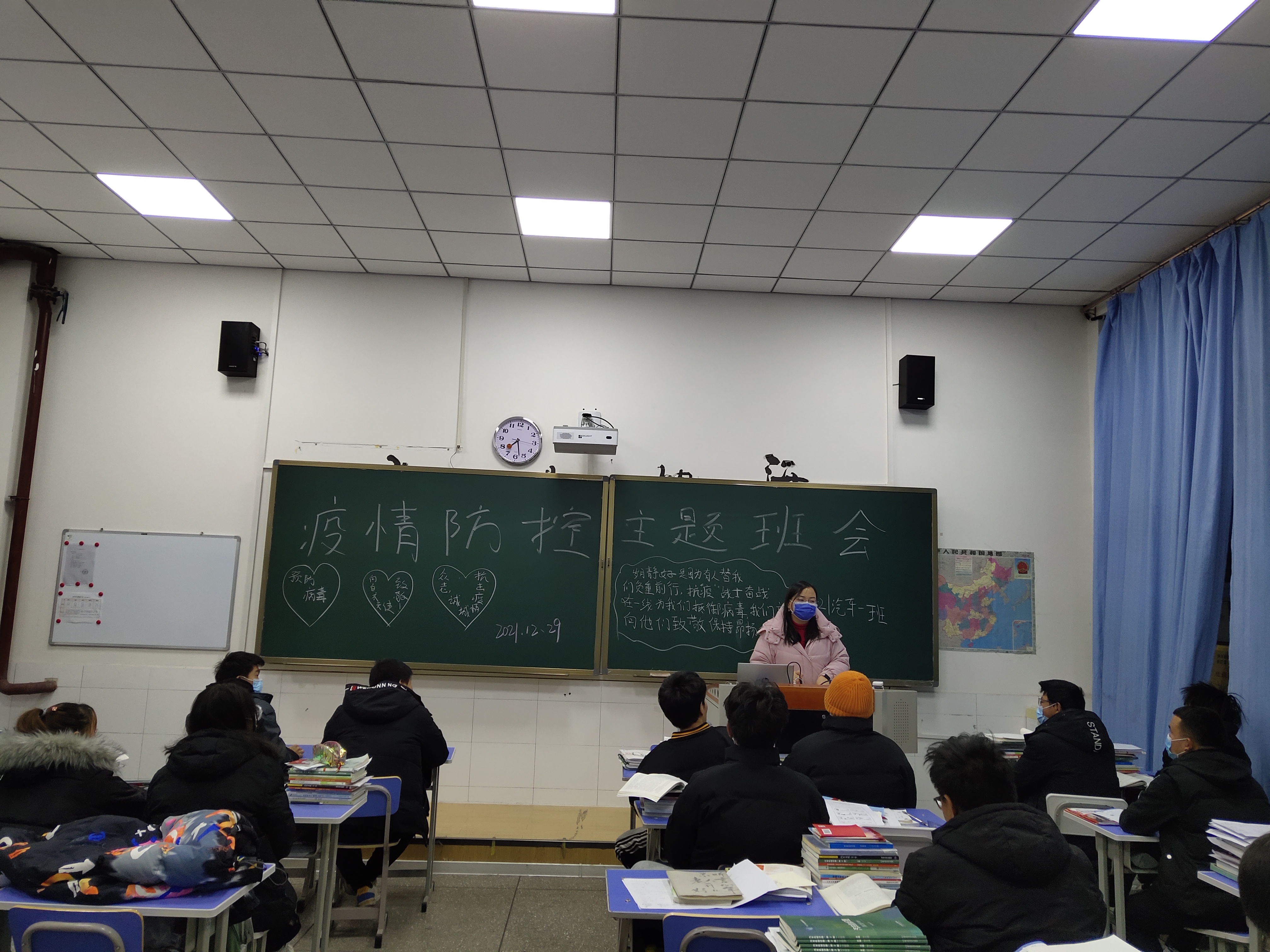 为有效做好疫情防控宣传,引导学生在这严峻的疫情形势下,面对疫情科学防护,在战“疫”中正常学习,争做健康生活的践行者。全校每个班级由辅导员组织于12月29日晚自习开展“疫情防控”相关主题班会。