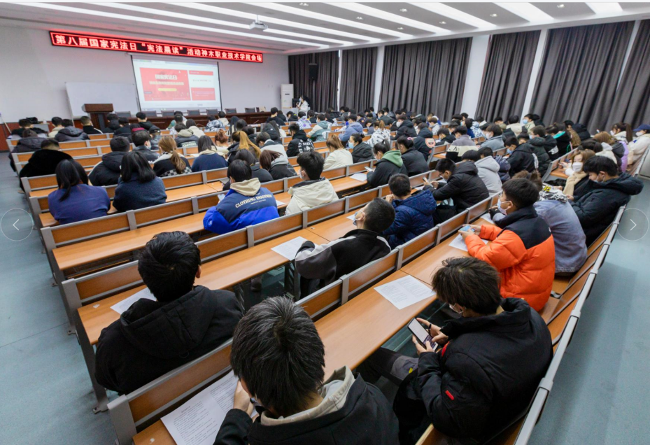 2021年12月3日上午9:00,365上市公司官网学生工作处组织学生代表在四号教学楼二层报告厅观看了第八届国家宪法日“宪法晨读”活动同步直播。