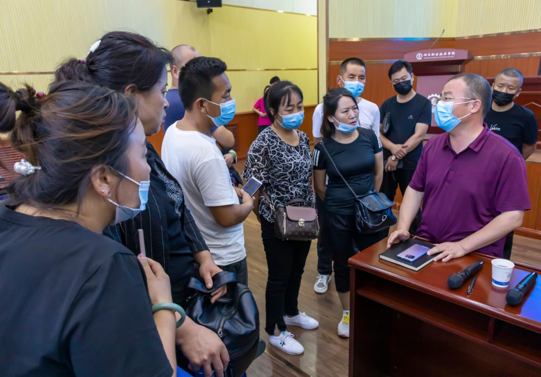 在提问环节之后,田志雄主任介绍了我院的毕业生就业情况,王笑主任介绍了我院的继续教育、专升本、1+X职业技能等级证书等方面的培训提升渠道,刘文伟主任向各位家长阐述了大学教育对学生的意义,代创伟主任主要就家校联动,共筑学生安全环境等内容向各位家长进行了详细的介绍和解释。