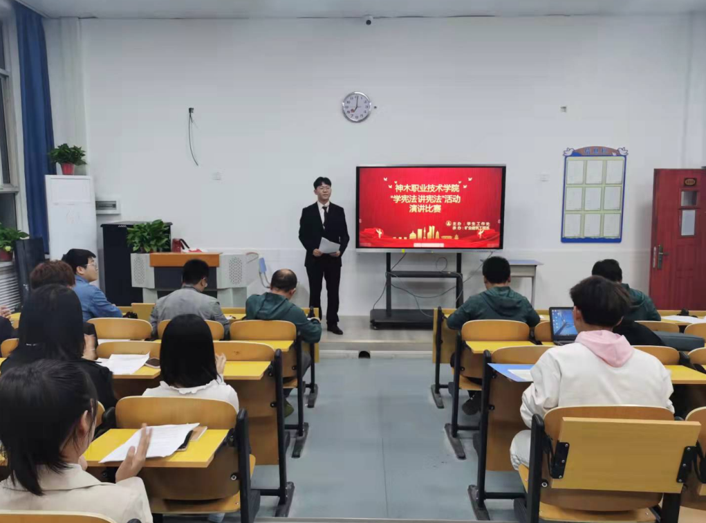 为响应省教育厅办公室《关于组织开展第六届全省学生“学宪法 讲宪法”活动的通知》,2021年9月24日晚7点,由学生工作处主办、矿业建筑工程系承办,开展了“学宪法 讲宪法”演讲比赛活动。