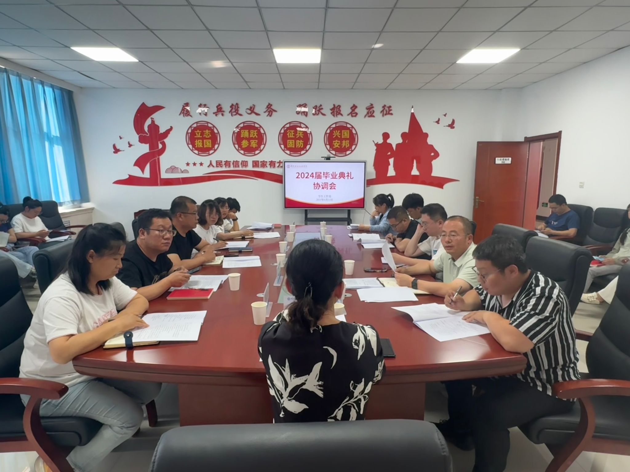 为了确保2024届学生毕业典礼各项工作顺利开展,6月11日下午,学生工作处组织相关部门在1号教辅楼2楼连廊处征兵会议室召开2024届学生毕业典礼工作协调会,党委委员、副校长郭亚芳主持会议并讲话,党政办、组宣部、教务处、学生处、实训继教处、团委、后勤处、安保处、各系主要负责人参加会议。