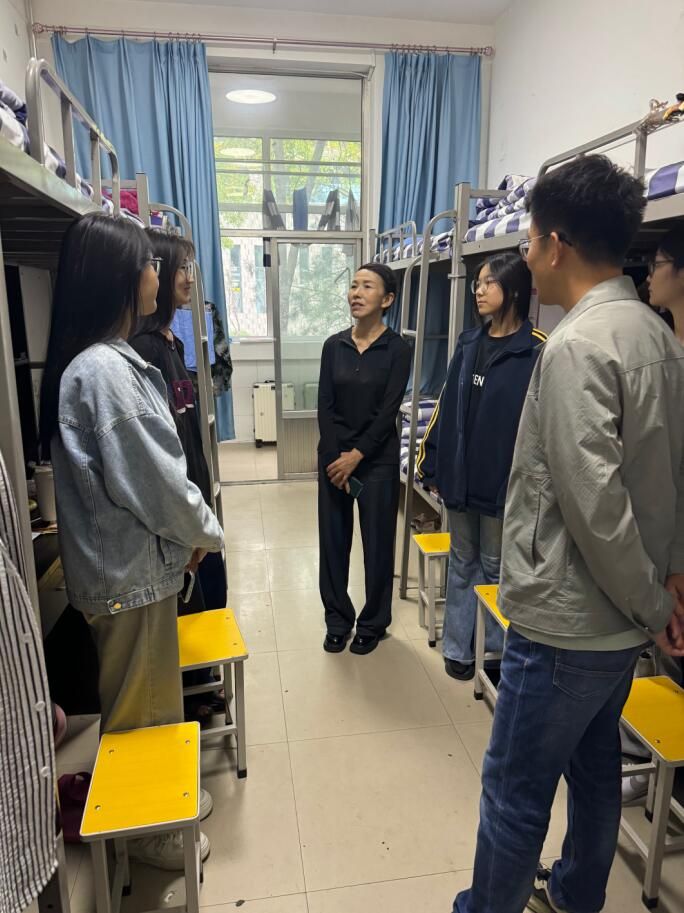 在走访过程中,校领导走进宿舍,与新生们亲切交谈,询问他们的适应情况、学习计划以及生活需求。领导们关注到许多新生初到校园,面对新环境可能感到陌生和孤独,特意与学生们分享了在校生活的经验和建议,鼓励他们积极参加校园活动,拓展社交圈,融入集体生活。