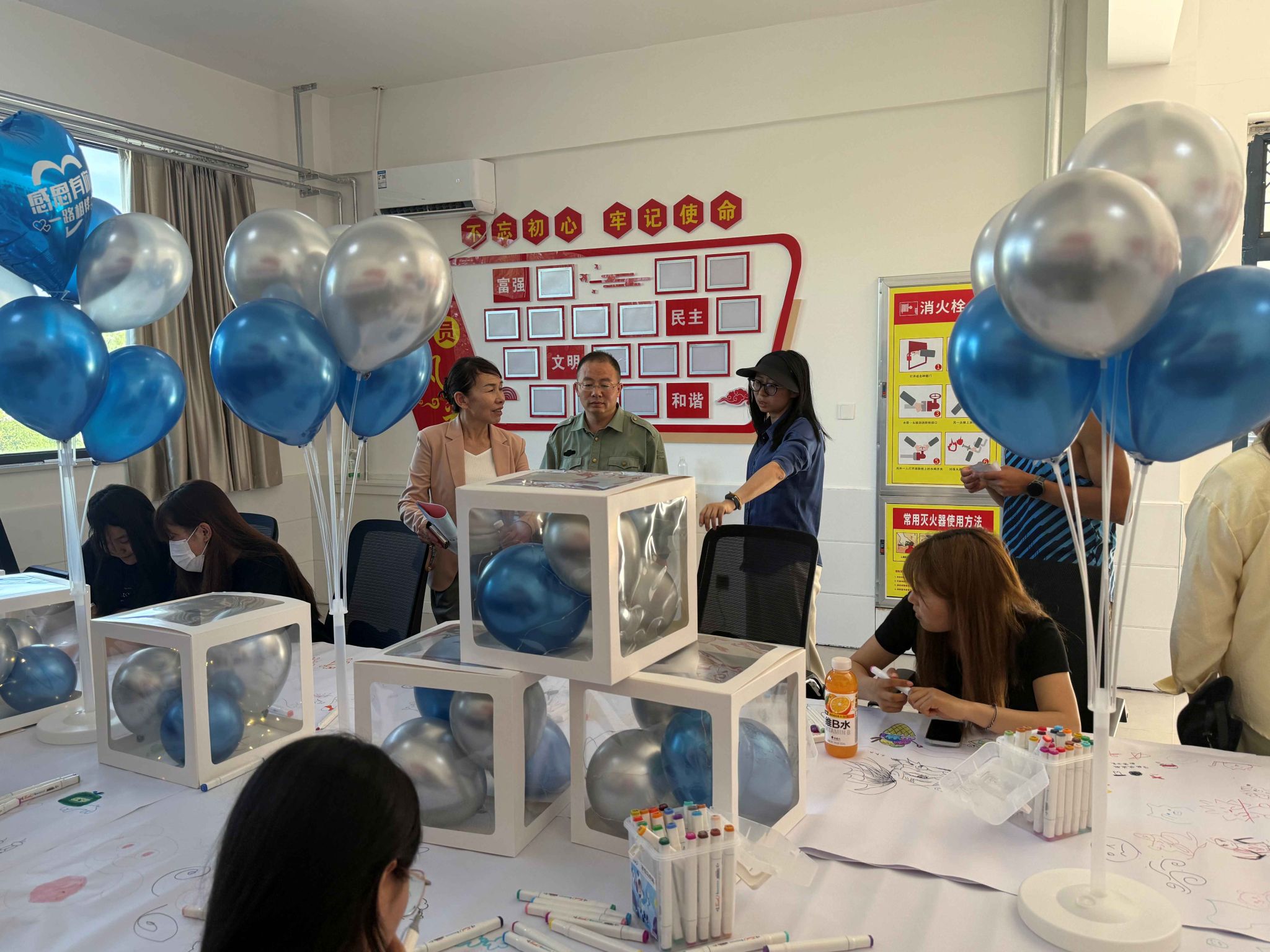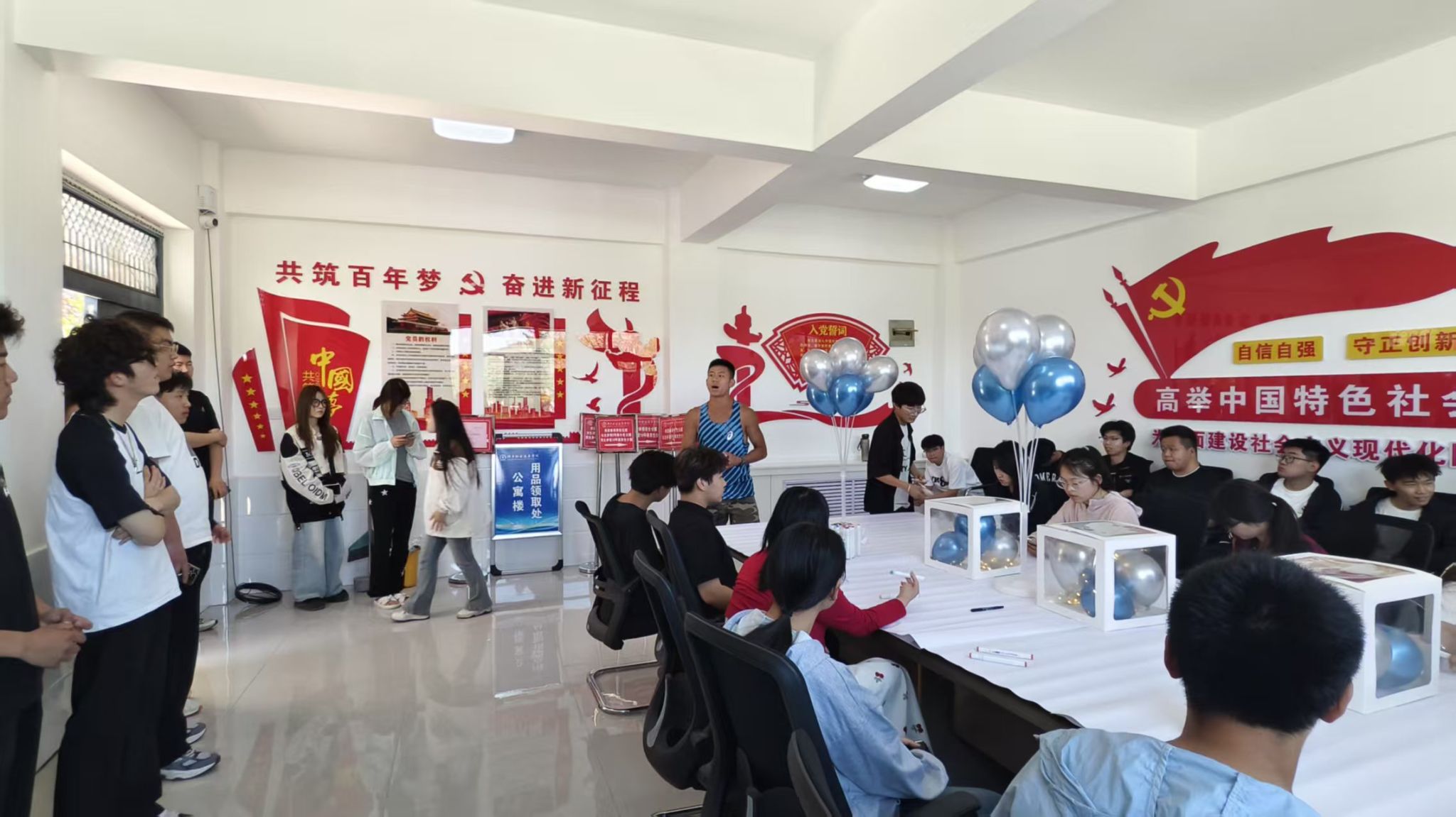 活动现场布置得温馨而富有活力,彩色气球、彩带与心理健康主题海报相得益彰,营造出轻松欢快的氛围。入口处的签到处,工作人员热情地引导同学们签到,并为他们发放活动流程介绍资料。