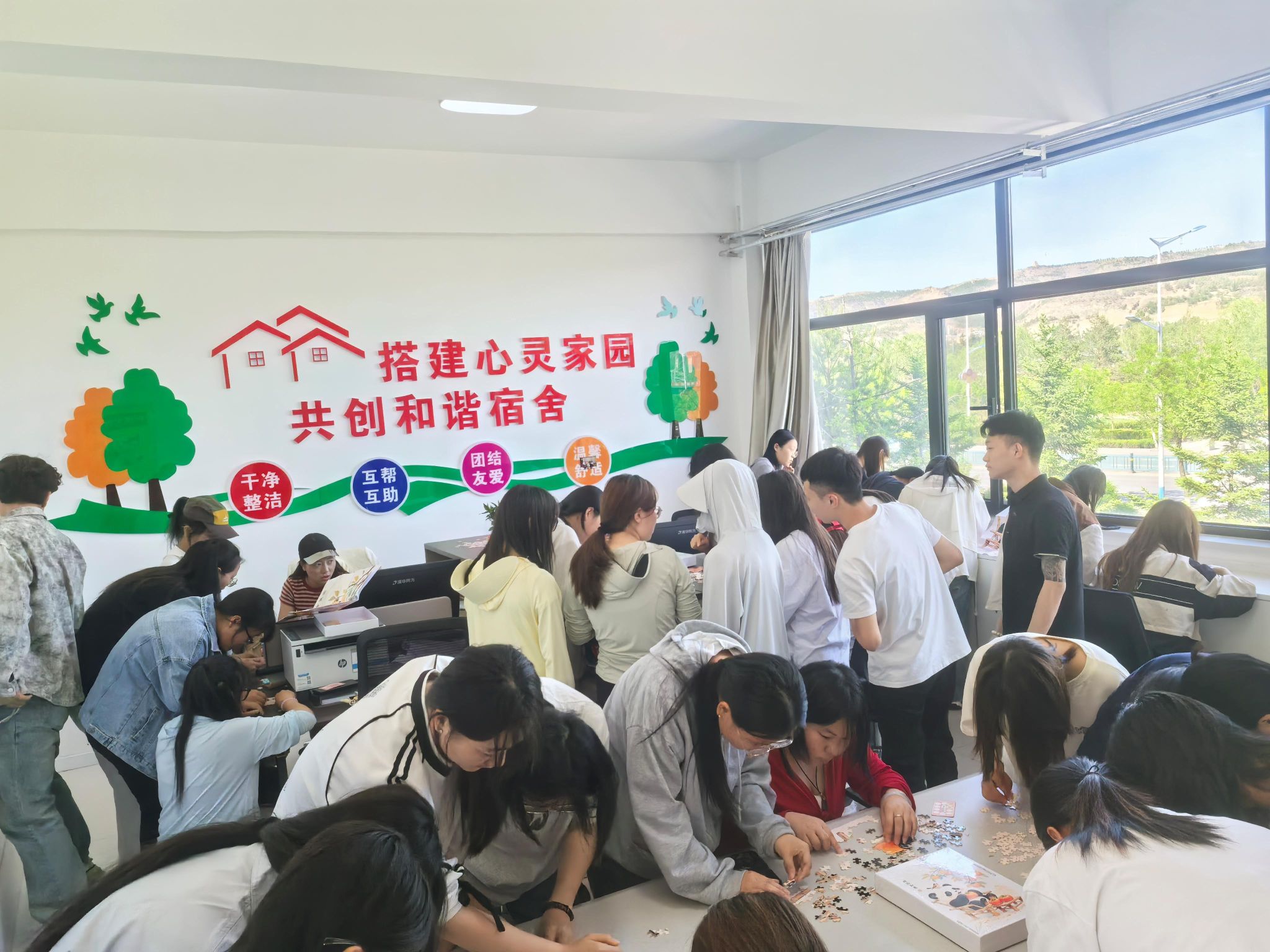 园游会设置了多个精彩有趣的游戏区域。在 “情绪猜猜猜” 游戏区,同学们两人一组,一人通过表情和肢体动作展示情绪词汇,另一人猜测。现场充满了欢声笑语,大家在游戏过程中不仅加深了对不同情绪的理解,还锻炼了观察力和表达能力。“心理拼图挑战” 则考验着参与者的耐心与团队协作能力,单人或多人组队共同完成心理主题拼图,大家聚精会神,争分夺秒。“信任之旅” 游戏中,两人一组,一人蒙上眼罩扮演 “盲人”,在同伴的语言引导下完成室内行走任务,这一游戏增进了同学之间的信任。