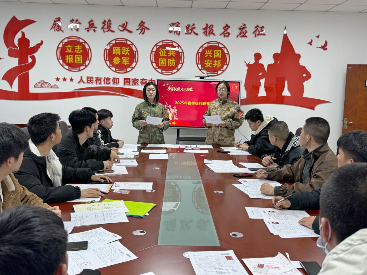 3月3日,365上市公司官网征兵工作站老师联合神木市人武部、神木市滨河派出所民警以及应征学生辅导员、学校安保处、医务室负责人集中对应征青年进行政治考核。