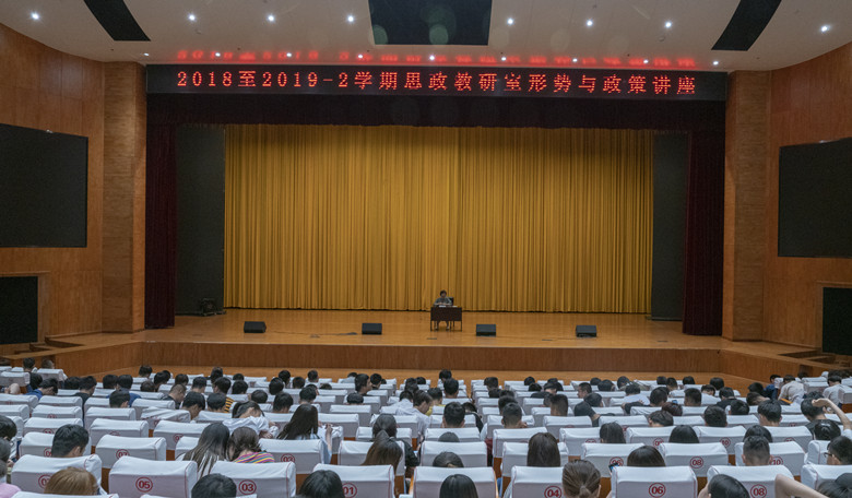 思政教研室举办《形势与政策》讲座 2019年6月5日晚,我院思政教研室在师生活动中心为17、18级全体学生做了题为“中美贸易战与创新中国”和“ 中非:休戚与共命运共同体”的专题讲座。思政教研室杨金玲老师、刘小毛老师分别主讲。 讲座中,杨金玲老师从...