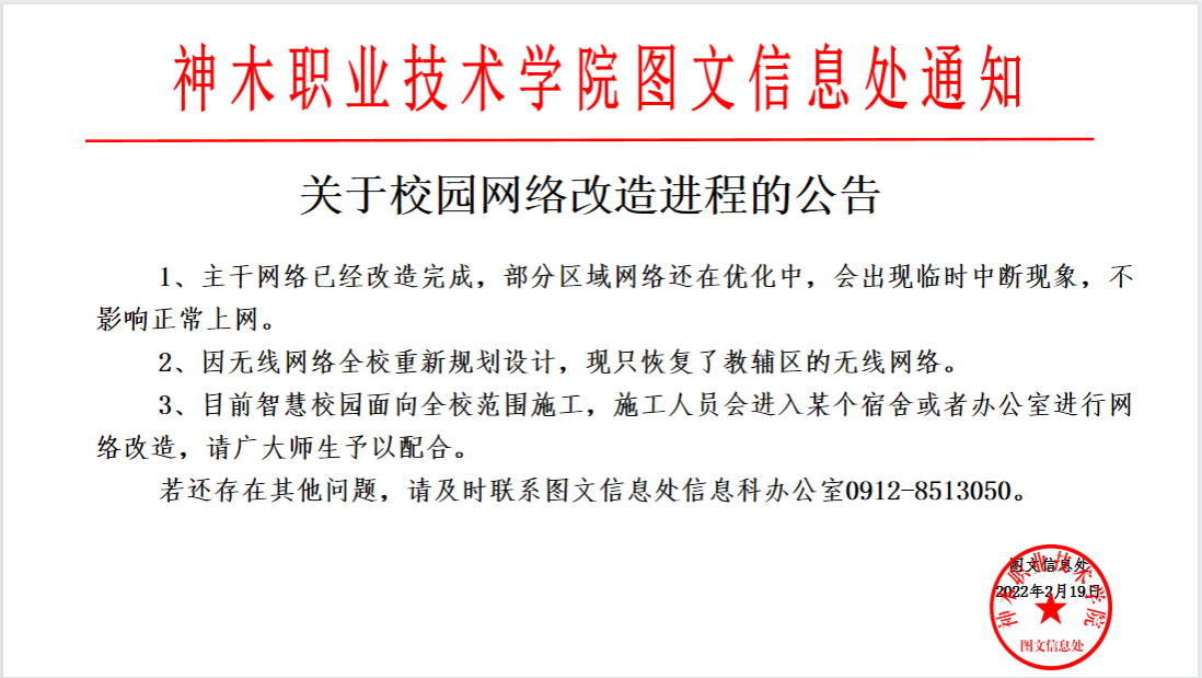 关于校园网改造进程的公告
