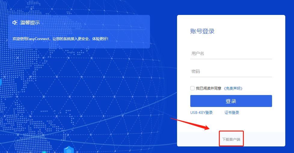 2、复制链接地址(https://vpn.smzy.edu.cn:4430/portal/#!/login)下载客户端或者在信息中心网站点击“校园资源VPN”下载VPN客户端。